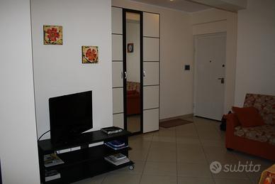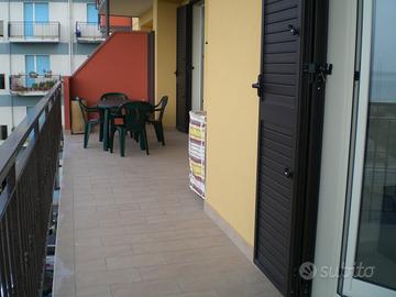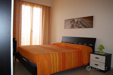 Nessuna disponibilità per il mese di Agosto. Nuovissimo appartamento sul lungomare di Sant'Agata di Militello, si affitta per periodo estivo con prezzi variabili in base alle settimane, max. 6 posti letto adulti più 1 in culla. L'appartamento è composto da: 1. Cucina salone (35mq) con comodo divano letto due posti con armadio guardaroba, cucina componibile con frigo, forno elettrico e ogni tipo di utensileria, pentolame ecc., televisore, mobile dispensa con contenitori di varie misure. 2.Camera da letto matrimoniale grande (17 mq) con armadio a sei ante. 3 Camera da letto matrimoniale piccola (14 mq) con armadio a ponte. 4 Bagno con doccia. 5 . Terrazzo attrezzato di tavolo e sedie che copre la lunghezza dell'intero appartamento con vista sul mare. L'appartamento è interamente climatizzato, ascensorato ed ha comodi parcheggi antistanti l'immobile, si trova in Via Cosenz, dietro il Museo dei Nebrodi. Prevista la possibilità di usare, per chi ha bambini piccoli, lettino da campeggio con materasso alto (tranne cuscino). Il mare si raggiunge a piedi attraversando il parcheggio e la strada, i lidi sono a circa 800 mt. Tutti gli accessori che si portano al mare possono essere lasciati nel garage interno coperto. Nell'appartamento NON sono ammessi animali.