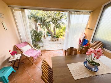 Scopri il fascino di Villasimius soggiornando nella casa vacanza Sterlizia, una residenza incantevole in una posizione privilegiata. A soli pochi passi dalle splendide spiagge della zona, questa casa è la scelta perfetta per chi cerca un soggiorno rilassante immerso in un panorama mozzafiato. La casa è composta da una camera matrimoniale al primo piano, dotata di un piccolo giardino privato dove potrai godere di momenti di assoluta tranquillità all'aperto. Un angolo di pace e serenità, ideale per rilassarsi lontano dallo stress quotidiano. Il bagno con doccia completa la sistemazione, garantendo praticità e comfort per tutta la durata del soggiorno. La zona giorno è un ambiente luminoso e conviviale, pensato per il massimo del relax. Qui potrai rilassarti sul divano letto, goderti un buon libro o passare del tempo con i tuoi cari. Il giardino antistante, con una vista spettacolare sul mare, ti regalerà emozionanti tramonti e ti inviterà a cenare all'aperto, circondato dalla bellezza naturale che solo Villasimius sa offrire. La posizione strategica della casa vacanza Sterlizia, a pochi minuti dalle meravigliose spiagge di Villasimius, ti permetterà di esplorare la zona senza rinunciare alla tranquillità. Perfetta per coppie, famiglie o piccoli gruppi, la Casa Vacanza Sterlizia è l'oasi ideale per chi desidera una vacanza all'insegna del relax, con il mare e la natura sempre a portata di mano.