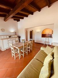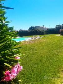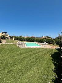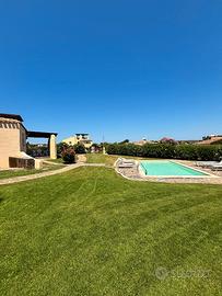 Il cuore pulsante della casa è rappresentato dalla grande sala, arredata con gusto e dotata di una cucina moderna e completamente attrezzata. Da qui, gli ospiti possono godere di una vista incantevole sul rigoglioso giardino e sulla scintillante piscina, creando un'atmosfera di armonia e serenità.