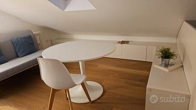 L'appartamento è composto da uno spazioso salone con cucina bagno ed antibagno, al piano superiore si trova una camera matrimoniale e due camerette, più uno studio ed il secondo bagno.