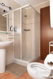 L'alloggio si sviluppa su due piani: al primo si trova una luminosa zona giorno con divano letto, ampio tavolo per pranzi in compagnia, cucina completamente attrezzata, una camera matrimoniale e un bagno con doccia. Al secondo piano, invece, un'altra camera matrimoniale, una con due letti a castello e un secondo bagno con doccia, per garantire praticità a tutti gli ospiti. All'esterno, un grande giardino privato con gazebo e barbecue.