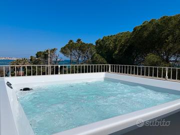 SPETTACOLARE TERRAZZA con vasca idromassaggio, lettini e sdrai per Solarium, ampio tavolo per cene da godere per tramonti con vista mozzafiato sul mare.