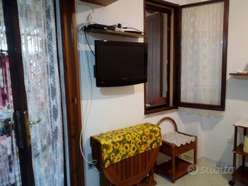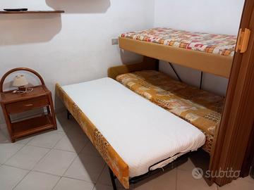 Casa al mare a circa 150 mt dal mare, (2+3 posti letto). la casa si trova al Pinus Village in Via del Borgo sopra gli appartamenti del residence "Abbaechelu" cosi' composto: cucina con soggiorno, camera da letto matrimoniale , bagno con doccia , veranda ombreggiata dove per poter pranzare e rilassarsi all'aperto. Il salone è dotato di un comodo divano letto trasformabile in letto a castello più letto singolo (3 posti letto), questo ambiente si puo' chiudere con una porta a soffietto in modo da poter avere la massima privacy e creare cosi' una vera e propria camera da letto indipendente, all'esterno c'è una doccia esterna con acqua calda . La casa è dotata ,inoltre, di : ventilatori a soffitto, condizionatore, lavatrice , tv satelitare, ferro e asse da stiro , phon , forno a microonde , frigorifero\freezer a cassetti , barbecue ecc.