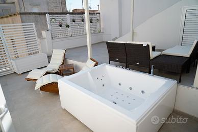 vasca idromassaggio 4 posti su un terrazzo nel centro storico con vista del maestoso campanile di Gioia del colle.