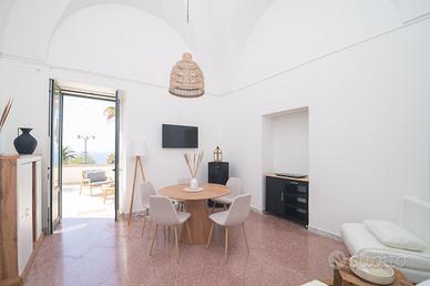 Situata in un elegante palazzo d'epoca completamente ristrutturato sul mare, la struttura ospita diverse suite arredate con cura sartoriale, valorizzando materiali naturali, colori tenui e dettagli che raccontano la nostra terra. Le ampie vetrate e le terrazze private offrono scorci incantevoli sul blu di Castro, da ogni angolazione.