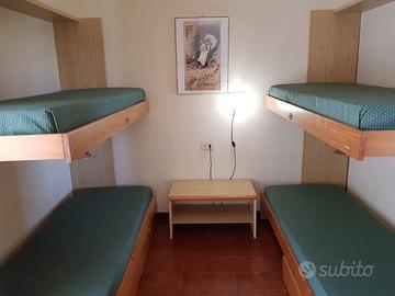 A( 4+2) - Soggiorno-pranzo 4 oposti letto (due letti a castello), camera da letto matrimoniale, angolo cottura po con frigorifero, cucina a gas, lavastoviglie, bagno con doccia, terrazzo, telefono.