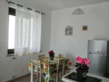 Affittasi casa vacanze a Budoni, a 6 minuti a piedi dalla spiaggia e a 15 minuti dal centro del paese. Il trilocale è al piano terra di una villa con giardino, di recente costruzione, stile moderno, ben rifinito, funzionale e confortevole. Si compone di: un'ampia e luminosa zona giorno, con muretto all'americana che separa la zona cucina dalla zona salotto composta da 2 divani, un pouf e tv-sat; 2 camere da letto doppie di cui una matrimoniale e l'altra con 2 letti singoli e terzo letto estraibile; un bagno con box doccia e lavatrice; una spaziosa veranda coperta, attrezzata per mangiare all'aperto ed un grande e rigoglioso giardino con posto auto privato. La casa ha l'aria condizionata e dispone di: utensileria da cucina, wifi gratuito, stendibiancheria, macchina del caffè, forno a microonde, piccolo barbecue e doccia esterna chiusa con acqua calda. Zona residenziale tranquilla ma allo stesso tempo baricentrica per spostamenti sia a piedi che in auto.