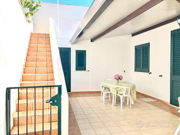 Situata sul promontorio della piccola località marina di Torre San Gregorio di Patu', a circa 150 mt. dalla scogliera (si raggiunge a piedi) e a 500mt dalla sabbia appartamento attrezzato con cucina abitabile arredato con componibile, due camere da letto ognuna arredata con letto matrimoniale, singolo ed armadio, 2 bagni con doccia e lavatrice, veranda antistante molto grande attrezzata con tavolo e sedie da giardino ideale per soggiornare, doccia esterna, persiane, infissi interni con vetri antisfondamento, zanzariere, TV e climatizzatore