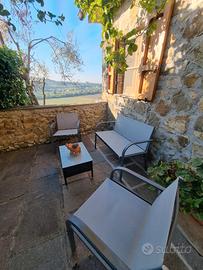 Di fronte a Tarquinia, su una collina bucolica, servita da 500 metri di sterrata, vista meravigliosa del borgo e fino al mare, maggio 80 euro/notte POI AUMENTI PROPORZIONALI STAGIONALI, ma sempre prezzi onesti. Chalet per 2 persone eccezionalmente 3, di 50 mq in proprietà bifamiliare, autonomo, perfettamente arredato ed organizzato, con ampia terrazza attrezzata e pergola di Passion Fruit ed altra terrazza con vista valle e mare. I bambini sono benvenuti ma con età superiore agli 8 anni per questioni di sicurezza. Anche gli animali sono benvenuti previa autorizzazione. Per loro un costo extra di pulizie di 30 euro per soggiorno breve (meno di 4 giorni) e 35 se superiore. Giardino di 1 ettaro di macchia mediterranea, alberi da frutto confinante col parco della Roccaccia e a 5 Km dalle spiagge. Composto da cucina abitabile con divano, TV, Internet, tavolo pranzo, bagno con bidet e doccia, stanza da letto matrimoniale. Bambini sopra gli 8 anni (per questioni di sicurezza). La proprietà ha il sistema fotovoltaico. Abbiamo vissuto 30 anni all'estero per lavoro tra Asia, Sudamerica ed Africa. L'ospitalità da noi ricevuta in molteplici forme ci ha insegnato il valore di un buon servizio per chi desidera stare bene in un luogo straniero. Tarquinia è un borgo tranquillo e bellissimo, pulito, sicuro e ricco di tutto. E' centrale ad un'area storica e culturale unica al mondo. Riguardo ai dintorni basta nominarli: la Tuscia, le Tombe Etrusche di Tarquinia, Necropoli di Cerveteri, Terme dei Papi ed altre, Argentario e Roma a 40 minuti di treno o macchina. Tutte mete raggiungibili in giornata! Lingue parlate: Inglese, Spagnolo, Italiano, Portoghese.
