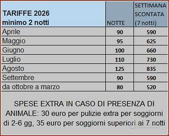 TARIFFE 2026 minimo 2 notti per NOTTE o SETTIMANA SCONTATA (7 notti)