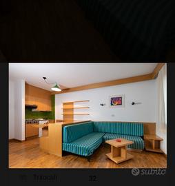 Vi sono cinque posti letto, un soggiorno, una cucina, un bagno; vi è tv, area condizionata, parcheggio privato e coperto, balcone vista Monti, possibilità di accesso per animali, ed ogni altro tipo di confort. Il Residence dispone di ogni confort : reception, bar e ristorante, animazione, wifi nelle zone comuni, lavanderia, noleggio biciclette, campi di calcio e tennis. per maggiori informazioni contattate numero 338.6164320 (Emanuele)