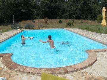 La piscina è il luogo più ambito: tuffi, tintarella, e pasti a bordo piscina o sotto il tendalino. La piscina è in comune tra ospiti (max 9 persone) e proprietari. Circondati come siamo da boschi e campi, l'atmosfera è tranquilla e ideale per rilassarsi al bordo della piscina o per passeggiate sotto gli alberi prima di cena.