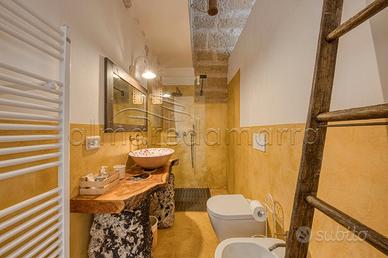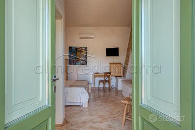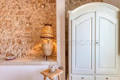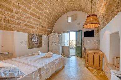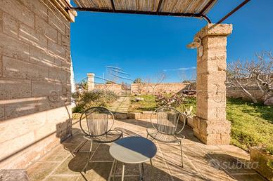 CIS : LE07506691000008292 TENUTA PALMIRA è un antico casale contadino usato un tempo per la bella stagione che coincideva con la raccolta dei fichi, frutto prevalente in questa zona che veniva essiccato e rivenduto. Oggi il casale è stato adibito a b&b formato da: 4 camere matrimoniali con bagno privato totalmente indipendenti. Si affaccia su una terrazza naturale con degli scenari magici che permettono di trascorrere le proprie vacanze nella più invisibile riservatezza e tranquillità. Ovunque si guardi si raccolgono forti emozioni grazie alla diversità del paesaggio che si alterna tra campagna e mare. Tenuta Palmira è un punto ideale di partenza per escursioni in luoghi di grande interesse culturale. Punto geografico ideale per effettuare escursioni a piedi o ciclistiche che possono avere come meta antichi siti archeologici del basso Salento o luoghi di grande interesse culturale. A 6 km si trova Presicce uno dei Borghi piu belli d'Italia, città dell'olio e degli ipogei, a 4 km Salve ridente cittadina con le sue marine Bandiera Blu, a 7 km Ugento dove si potrà visitare il Museo Archeologico, a 8 km Patù e le sue "centopietre", mausoleo sepolcrale del IX sec. e tanto altro ancora a pochi km dalla nostra tenuta. Ad appena 2 km da noi le spiagge più belle del Salento: Torre Pali, Lido Marini, Torre Mozza, Pecoluse, Torre Vado. Spiaggia libera. Quando tira vento di tramontana si trasforma in un vero e proprio paradiso, acqua cristallina che non ha nulla da invidiare ai paesaggi caraibici. Non a caso uno degli stabilimenti presenti ha scelto come nome "Maldive del Salento" che negli anni ha finito per essere utilizzato comunemente per indicare l'intera località, contraddistinta da sabbia bianca finissima e da fondali bassi e trasparenti. Ricche colazioni ogni mattina adornano i tavoli della zona pranzo che è situata sia all'interno della costruzione sia sotto il porticato in legno antistante l'antico forno a legna. La sensazione è quella di sentirsi subito a