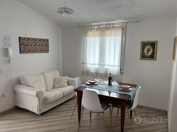 Accogliente appartamento al primo piano, inserito in un contesto tranquillo e silenzioso, perfetto per chi desidera staccare dalla routine quotidiana e concedersi una vacanza all'insegna del relax. La posizione è ideale: il centro del paese è raggiungibile in soli 5 minuti a piedi, così come la splendida spiaggia di Sottotorre, facilmente accessibile con una breve passeggiata. All'arrivo gli ospiti vengono accolti da una graziosa terrazza, lo spazio perfetto per rilassarsi all'aria aperta, gustare una colazione al sole o sorseggiare un drink al tramonto. Dalla terrazza si accede all'interno dell'appartamento, che offre ambienti luminosi e funzionali. La zona giorno è composta da un soggiorno e da un angolo cottura ben attrezzato, dal quale si accede a una piccola veranda con vista sui tetti del paese e suggestivi scorci di mare di Calasetta. Un comodo disimpegno conduce alla zona notte, dove si trovano il bagno con doccia e lavatrice, una camera matrimoniale climatizzata (con possibilità di aggiungere, su richiesta, un letto singolo pieghevole) e una seconda camera, anch'essa dotata di aria condizionata, con due letti singoli trasformabili in letto matrimoniale. Completa la proprietà un pratico ripostiglio.