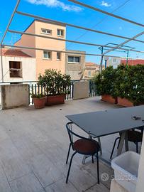 Grazie alla posizione centrale di questo alloggio, e a 50 metri dalla spiaggia, l'intero gruppo potrà accedere facilmente a tutte le attrazioni locali. Il comodo appartamento, con ingresso privato, è composto da due camere da letto, due bagni, un soggiorno-cucina con divano letto e un bel attrezzato terrazzo a livello.