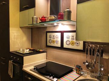 Cucina/soggiorno, bagno con doccia e piccola vasca e balcone adatto a famiglie di max tre persone.