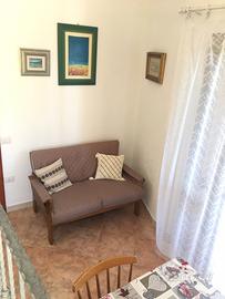Località Torre dei Corsari,Arbus. Grazioso bilocale vista mare e macchia mediterranea. Ideale per coppia,2/3 posti letto a 100 mt. dal mare cristallino e spiaggia dorata raggiungibile anche a piedi. Soggiorno con angolo cottura, tv,forno,frigo,freezer,microonde,provvisto di stoviglie e pentole, Wi-Fi,camera matrimoniale con terzo letto a richiesta, bagno finestrato con doccia,wc,bidet,lavatrice. Piccolo terrazzo coperto con stenditoio.Parcheggio.Zona ventilata.Acqua potabile collegata a rete idrica.Situato presso condominio privato Costadoro con servizio di vigilanza 24/h. Raggiungibili a piedi si trovano market,ristorante, pizzeria,piscina,bar,gelateria,negozi di souvenir,farmacia,piazza intrattenimenti serali,mercato settimanale. Non sono ammessi animali. Biancheria da letto e bagno fornita con piccolo contributo. A richiesta servizio navetta privato a pagamento verso aeroporto o stazione treni. Disponibile nei mesi giugno, luglio, agosto, settembre e ottobre