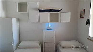 Cin numero IT075043C200050961 Affitto a Torre dell'Orso villetta con due camere da letto, con 5 posti letto comodi, due bagni con box doccia ampio, tinello attrezzato con piano cottura. Il villino è con veranda e posto auto. Il giardino è grande, con tettoia 7 x 4, altalena, doccia esterna con acqua calda, barbecue e sdraio. La casa è completa di condizionatore, lavatrice, ferro con asse da stiro, 2 phon per capelli, frullatore a immersione, microonde, 2 TV, frigo, forno, piatti, stoviglie eccetera. La casa è tenuta in ottime condizioni, c'è tutto l'occorrente per cucinare per 6-8 persone, cuscini e materassi sono nuovi. È Affitto anche appartamento con 8 posti letto. Prezzo da concordare