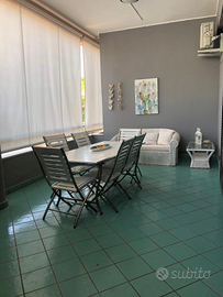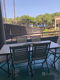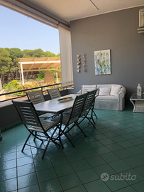 Ampia Veranda con vista sulla pineta e sul mare, perfetta per pranzi all'aperto e momenti di relax.