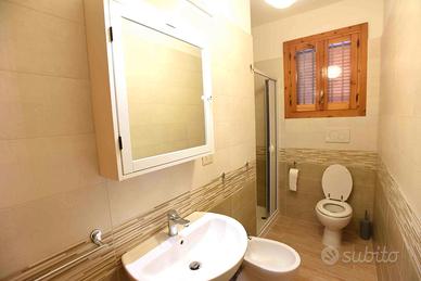 si sviluppa su due piani e un seminterrato, un lungo viale (circa 70mq) all'entrata vi permetterà di parcheggiare le vostre auto all'interno della villetta gratuitamente e una bella veranda (mq 30) con tettoia in legno dotata di tavolo e sedie vi permetterà di pranzare o cenare all'aperto se volete.il piano terra è composto da sala da pranzo, cucina nuovissima, bagno con lavatrice e doccia e giardino retrostante (mq50) con doccia coperta e chiusa e pilozza esterna. al primo piano due grandi camere con bagno (senza doccia... le docce sono comunque tre in tutta la villetta ) e balcone.due altre camere sono presenti con altri 4 posti letto al piano seminterrato(ALTEZZA DELLE 2 CAMERE AL SEMINTERRATO 1,85m) e un terzo bagno con doccia. tv, climatizzatori, barbecue in pietra all'esterno, ferro da stiro, asciugacapelli, ventilatore, forno, stendibiancheria.
