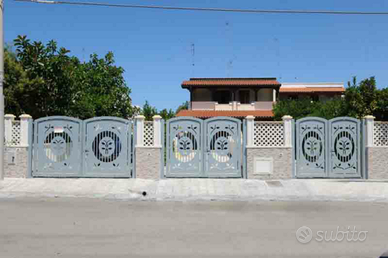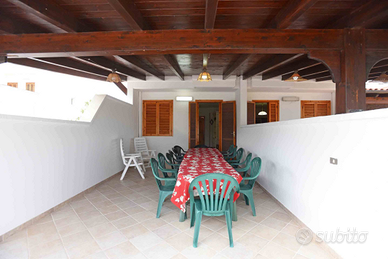 si sviluppa su due piani e un seminterrato, un lungo viale (circa 70mq) all'entrata vi permetterà di parcheggiare le vostre auto all'interno della villetta gratuitamente e una bella veranda (mq 30) con tettoia in legno dotata di tavolo e sedie vi permetterà di pranzare o cenare all'aperto se volete.il piano terra è composto da sala da pranzo, cucina nuovissima, bagno con lavatrice e doccia e giardino retrostante (mq50) con doccia coperta e chiusa e pilozza esterna. al primo piano due grandi camere con bagno (senza doccia... le docce sono comunque tre in tutta la villetta ) e balcone.due altre camere sono presenti con altri 4 posti letto al piano seminterrato(ALTEZZA DELLE 2 CAMERE AL SEMINTERRATO 1,85m) e un terzo bagno con doccia. tv, climatizzatori, barbecue in pietra all'esterno, ferro da stiro, asciugacapelli, ventilatore, forno, stendibiancheria.