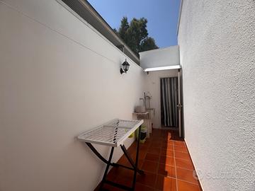 LA STRUTTURA È COSI COMPOSTA: da uno spazioso giardino indipendente, arredato con tavolo e sedie per poter mangiare all'esterno, accesso a terrazzo, ingresso, sala pranzo cucina completa di elettrodomestici, utensili e accessori vari, camera da letto, bagno con box doccia acqua calda/fredda, giardinetto retrostante con pilozza e accessori per lavare.