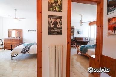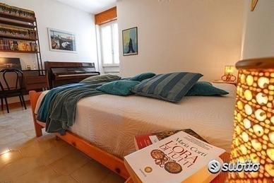 Le due camere matrimoniali, arredate con gusto, garantiscono una quiete rigenerante. La camera principale dispone di un bagno privato, mentre un secondo bagno è accessibile a tutti gli ospiti. L'ampio open space accoglie una cucina completamente attrezzata e una zona living, creando un ambiente spazioso e accogliente.
