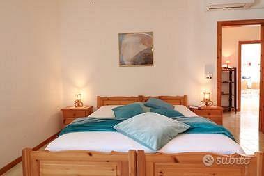 Le due camere matrimoniali, arredate con gusto, garantiscono una quiete rigenerante. La camera principale dispone di un bagno privato, mentre un secondo bagno è accessibile a tutti gli ospiti. L'ampio open space accoglie una cucina completamente attrezzata e una zona living, creando un ambiente spazioso e accogliente.