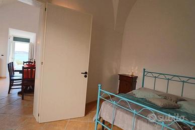 La zona notte si compone di due camere da letto matrimoniali, offrendo spazio per un massimo di 6 persone. Il bagno principale, con finestra, è dotato di doccia e lavatrice, assicurando praticità e comfort agli ospiti.