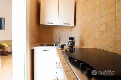 Nella zona soggiorno, un elegante tavolo da pranzo con sedie offre un'eccezionale vista sul mare durante i momenti conviviali. Il tocco di modernità è dato dalla TV da 32 pollici e dal comodo divano letto matrimoniale. Dal soggiorno si accede al cucinino, completamente attrezzato con tutte le stoviglie necessarie, e al bagno di servizio senza doccia.