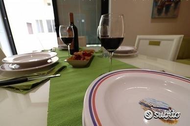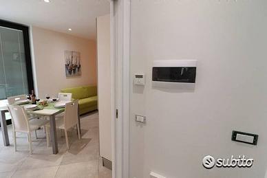 L'appartamento, di recentissima costruzione, è un'elegante dimora curata nei minimi dettagli, che offre una camera da letto matrimoniale, una cameretta con un doppio lettino a ponte, un ampio soggiorno con divano letto doppio, un angolo cottura completamente attrezzato, due bagni con doccia e un balcone abitabile attrezzato con mobili da esterno per vivere momenti conviviali all'aperto.