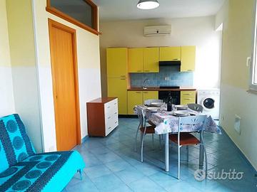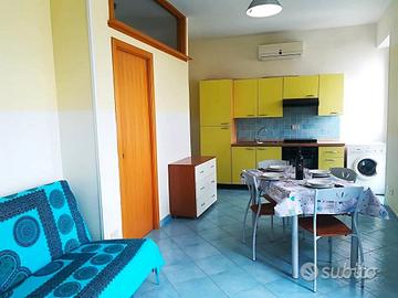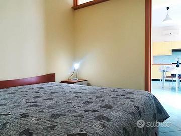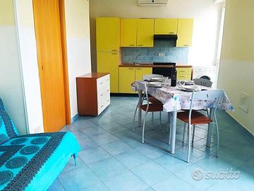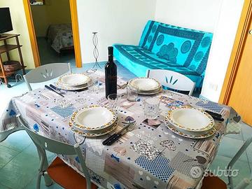 La struttura si compone di una accogliente camera da letto matrimoniale, un bagno con doccia e lavatrice, un pratico angolo cottura e un luminoso soggiorno con divano letto doppio e due porte finestre che offrono una vista mozzafiato sul mare. Con la sua capacità di 4 posti letto, questo piccolo appartamento è consigliato sia per famiglie che per piccoli gruppi di amici.