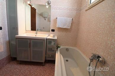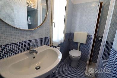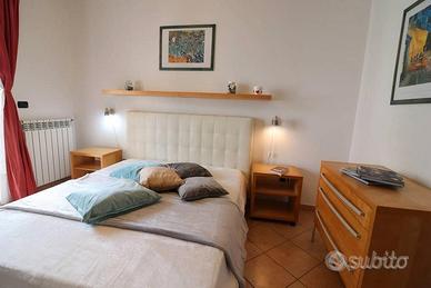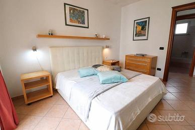 Il reparto notte, accessibile attraverso il disimpegno, offre due camere da letto matrimoniali, entrambe con affaccio su ampi balconi che circondano l'abitazione. Con una capacità di ospitare 6/7 persone, la casa dispone di due bagni: uno principale al piano casa con lavatrice e vasca da bagno, e un secondo al piano terrazza con doccia.