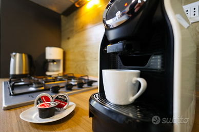 CUCINA- dotata di elettrodomestici da incasso (frigorifero con cella congelatore) forno microonde grill, piano cottura a 4 fuochi, cappa di aspirazione, macchina caffe' americano, bollitore acqua calda, pentole, piatti e tutto il necessario per la preparazione dei pasti come a casa vostra, mq 38