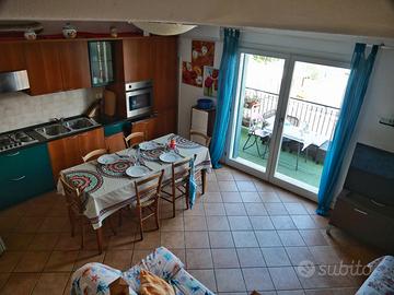 Favoloso tricamere con ampia vista sulla laguna, l'appartamento si trova al secondo piano senza ascensore di una palazzina di recente costruzione e si sviluppa in due livelli. Ideale per 6 adulti o 8 persone di cui alcuni bambini. Al primo livello si trova il soggiorno con angolo cottura, un bagno con doccia, e la terrazza da cui si può ammirare la laguna e i monti carsici e soprattutto, il santuario di Barbana. Ideale per un aperitivo a lume di candela con splendido panorama. Nel soggiorno ci sono anche due divani letto matrimoniale.