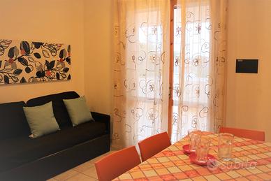 Luminoso appartamento composto da soggiorno con angolo cottura attrezzato e comodo divano letto doppio, due camere matrimoniali, bagno finestrato con box doccia.