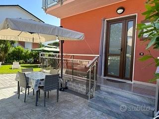 Disponibile per il periodo estivo bel trilocale di 50 mq, molto ben arredato. al piano terra in zona tranquilla (strada a fondo chiuso ) a Marina di Massa. L'appartamento per max 4 persone è composto da due camere da letto (una con letto matrimoniale e una con due letti singoli) una cucina attrezzata e un bagno con doccia. in prossimità dell'entrata c'è un tavolo con sedie e ombrellone per mangiare all'esterno. C'è il giardino con pergola, tavolo, sedie e barbecue. La casa è arredata e completa di stoviglie e elettrodomestici tra cui lavastoviglie, lavatrice, microonde, ferro da stiro, macchina del caffè a cialde. C'è il Wi-Fi e l'aria condizionata. Nel perimetro della casa c'è il posto per 1 auto e in più metto a disposizione due bici. La casa dista 800 m dal centro di Marina di Massa e 500 m dalla spiaggia. Accettiamo solo cani di piccola taglia, abituati a stare in casa. Contattaci per maggiori informazioni e per un 'offerta