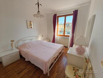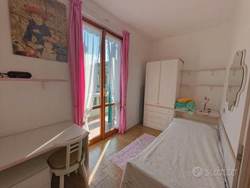 Camera matrimoniale molto ampia con armadio, specchi, comò e comodini. Cameretta più piccola con un letto singolo e uno a scomparsa completa di scrivania e armadio.