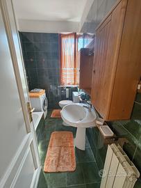Bagno con lavatrice, bidet e vasca da bagno utilizzabile anche come doccia.