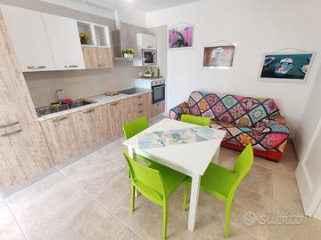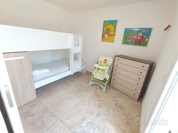 Confortevole e grazioso TRILOCALE di proprietà privata, piano terra rialzato, incluso parcheggio privato e numerato a soli 50 metri dal mare, con spiaggia dotata di tutti i confort, libera e lidi attrezzati raggiungibili attraversando una fresca pineta di eucalipto di pertinenza della Rotonda Serena.