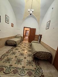 Trilocale con caratteristiche architettoniche tipiche del Salento, recentemente ristrutturato nel rispetto del suo valore storico. Dotata di tutti i servizi essenziali per godersi a pieno il soggiorno. Punto di forza il giardino retrostante, ottimo per una cena o semplicemente rilassarsi sotto le stelle. Soggiornerete in un paesino estraneo a turbamenti da traffico e folla. Situato nel centro di Chiesanuova (frazione di Sannicola) a soli 5km dalle spiagge di Rossina, e a 7km da Gallipoli. In 5 minuti di auto si possono raggiungere meravigliose spiagge (pubbliche o attrezzate), sono anche presenti dei servizi di navetta pubblica per raggiungere la zona balneare Rossina. Ancora la stazione ferroviaria si trova a 300m, con collegamenti diretti per Lecce e Gallipoli.