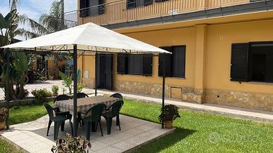 A soli 400 metri dalla splendida spiaggia di Nicotera Marina (VV), bandiera verde (spiaggia a misura di bambino), si affitta trilocale al piano terra di una palazzina familiare con spazioso patio esterno, con ingresso indipendente lato giardino (di ca. 100 mq, recintato con cancelletto) ad uso esclusivo degli ospiti di questo appartamento, dotato di gazebo, tavolo e sedie. L'appartamento comprende due camere da letto con massimo 5 posti letto, un bagno di recente ristrutturazione con ampia doccia, corridoio, salone con TV e cucina a vista. L'alloggio, inoltre, è dotato di zanzariere, frigorifero con freezer, stoviglie e pentolame, forno statico, asse e ferro da stiro, stendi biancheria, lavatrice, asciugacapelli e 2 ventilatori. Tropea dista solamente circa 30km! Capo Vaticano - Grotticelle 20 km.