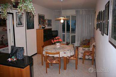 Proponiamo, per soggiorni estivi anche di pochi giorni, un appartamento trilocale ampio e luminoso con arredo funzionale, disposto al terzo piano con ascensore e con strepitosa terrazza panoramica, esposta a sud verso il mare. Internamente l'immobile si suddivide in zona giorno con soggiorno luminoso che accoglie l'angolo cottura perfettamente attrezzato, tavolo con sei posti a sedere ed il divano letto doppio. La zona notte si divide tra due camere da letto doppie e un grande bagno con comoda cabina doccia e la lavatrice . Non può mancare l'aria condizionata compresa nel prezzo e il posto auto numerato.