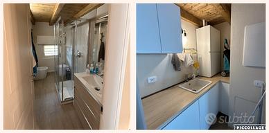 TRILOCALE di circa 60mq oltre a soppalco da 15mq, composta da: un ampio e luminoso soggiorno/cucina con tetto in legno a vista, arredato con cucina completa di forno tradizionale, forno micro onde, frigorifero, congelatore, lavastoviglie, macchina caffè, Smart TV, tavolo allungabile da 4/8 posti e divano letto, dallo stesso locale tramite una scaletta si può accedere al soppalco dove sono stati ricavati due letti singoli. Una camera principale dotata di ampia finestra e tetto in legno a vista, arredata con letto doppio, ampio armadio, cassettiera, e comodini. Una camera secondari dotata di ampia finestra e tetto in legno a vista, arredata con letto castello 3 posti, ampio armadio, cassettiera e soppalco per deposito valige. Un bagno dotato di lavabo, spaziosa doccia con box in vetro, WC e bidet, completano il locale da bagno mobile sottolavabo, colonna laterale, e specchio. Nel locale disimpegno è stato ricavato una zona adibita a lavanderia dotata di lavatoio, lavatrice/asciugatrice e relativi mobili accessori. L'appartamento è dotato di impianto di riscaldamento radiante a pavimento, caldaia autonoma, impianto elettrico domotico, tapparelle motorizzate, videocitofono, impianto TV, impianto Fotovoltaico + accumulo. L'appartamento viene concesso in affitto, completo di stoviglie, pentole e principali accessori per un confortevole soggiorno, comprensivo di set completo di LENZUOLA, COPRIPIUMINO e PIUMONI per ogni letto e divano letto. TUTTO COMPRESO