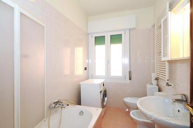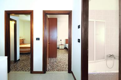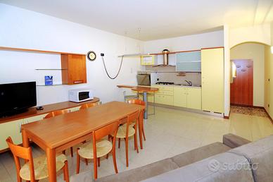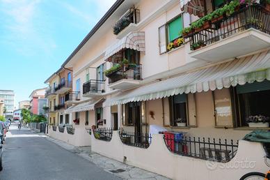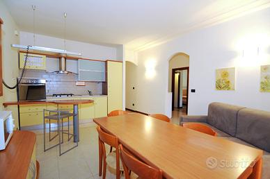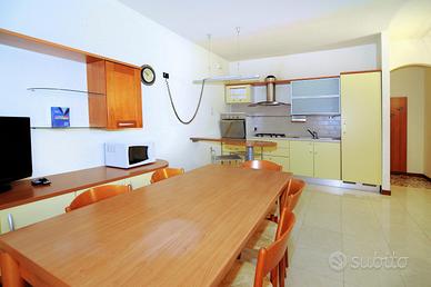 Trilocale, all'inizio della spiaggia di Ponente, primo piano di una palazzina di poche unità. Si compone di: ingresso, ampio soggiorno con angolo cottura e terrazzo e divano letto matrimoniale, camera matrimoniale con terrazzino, camera grande con due letti singoli, bagno finestrato con vasca/doccia.