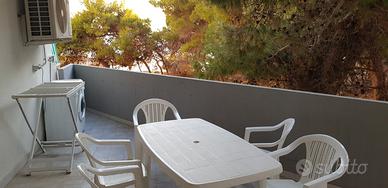 Appartamento in zona tranquilla, Rivabella, a 5 km dal centro di Gallipoli. Composto da 2 camere matrimoniali, 1 bagno, alcuni con balcone vista mare, ampia sala con divano letto e angolo cottura. L'appartamento è dotato di Lavatrice, Aria condizionata (attivazione con supplemento).