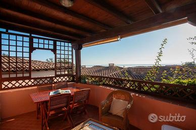 L'esclusivo trilocale si trova nel complesso residenziale di Punta Sabatino, a Puntaldia, in Gallura, terra dove la macchia mediterranea fa da padrona e il mare cristallino incanta i nostri ospiti. Oltre alle bellezze naturali, gli ospiti possono godere di una splendida piscina condominiale, di campi da tennis, di un porto completamente attrezzato e di un campo da golf dai panorami mozzafiato. Bellissimo trilocale in affitto, situato nel Condominio Galathee, a circa 300 metri dalla spiaggia La Cinta e 300 metri dalla piazzetta centrale di Puntaldia dove puoi trovare esercizi commerciali che contribuiscono a rendere più confortevole e piacevole il soggiorno dei residenti: ristoranti, bar, boutiques, supermarket, farmacie, centri servizi, centri sportivi, centri benessere. L'immobile è un capo schiera libero su due lati con veranda coperta arredata di tavolo e sedie. I pavimenti in cotto, infissi in mogano, ceramiche artigianali sarde pregiate, soffitti in legno con travature a vista e si sviluppa su due livelli: al primo piano una bella cucina indipendente dotata di lavastoviglie, frigorifero, freezer e una zona giorno con salotto, una camera matrimoniale, un bagno. Al piano terra, un'ulteriore camera da letto e bagno. L'abitazione è molto curata negli arredi, dotata di televisione, lavatrice, lavastoviglie e climatizzatore. Perfetta per chi ama la tranquillità e le comodità e cerca anche in vacanza un angolo dove sentirsi a Casa. CIN: IT090092C2000R1439 Per Info via e-mail: info@santeodoro360.it o Tel e WhatsApp