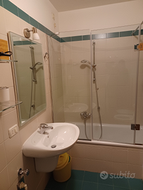 Camera matrimoniale con piccolo servizio ( box doccia), soggiorno con angolo cottura e divano letto matrimoniale, cameretta con letto a castello, bagno principale con vasca ( box doccia), giardino privato e vari posti auto condominiali riservati al residence.