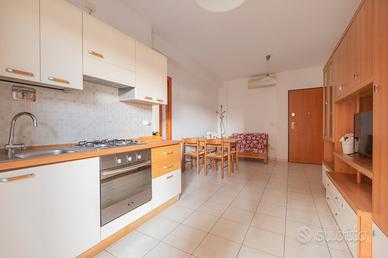 - open space con soggiorno e angolo cottura, divano e accesso al balcone attrezzato vista strada interna