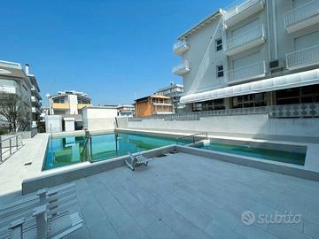 ? Prestigioso Residence Fronte Mare con Piscina - Lido di Jesolo (P.zza Marconi) ? ? Situato nel cuore della località, a pochi passi da negozi, ristoranti, supermercati, farmacia, panificio e parchi divertimento per bambini ?? ? Appartamento al Secondo Piano con Ascensore, composto da: ? Cucina attrezzata (frigorifero, cella frigorifera, piano cottura a gas, utensili, tavolo da pranzo, TV) ? Soggiorno con divano letto ? Camera matrimoniale ? Camera con due letti singoli ? Bagno con box doccia, wc, bidet e stendibiancheria (senza finestra) ? Lavatrice e dotazioni per pulizia giornaliera ? Piscina per adulti e bambini ??? Custode giornalieri in residence ? NO ARIA CONDIZIONATA ? Pet Friendly ? APE: G ? C.I.: 40283/2024 ? EPgl,nren: 159,93 kWh/m² anno ? Codice Identificativo Regionale: 027019-LOC-08910